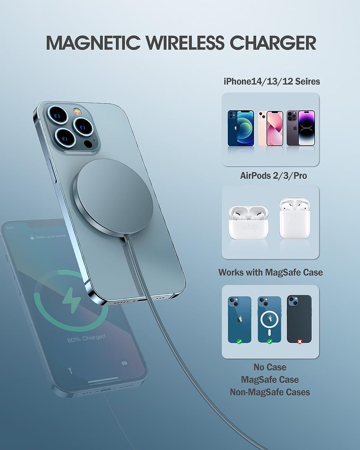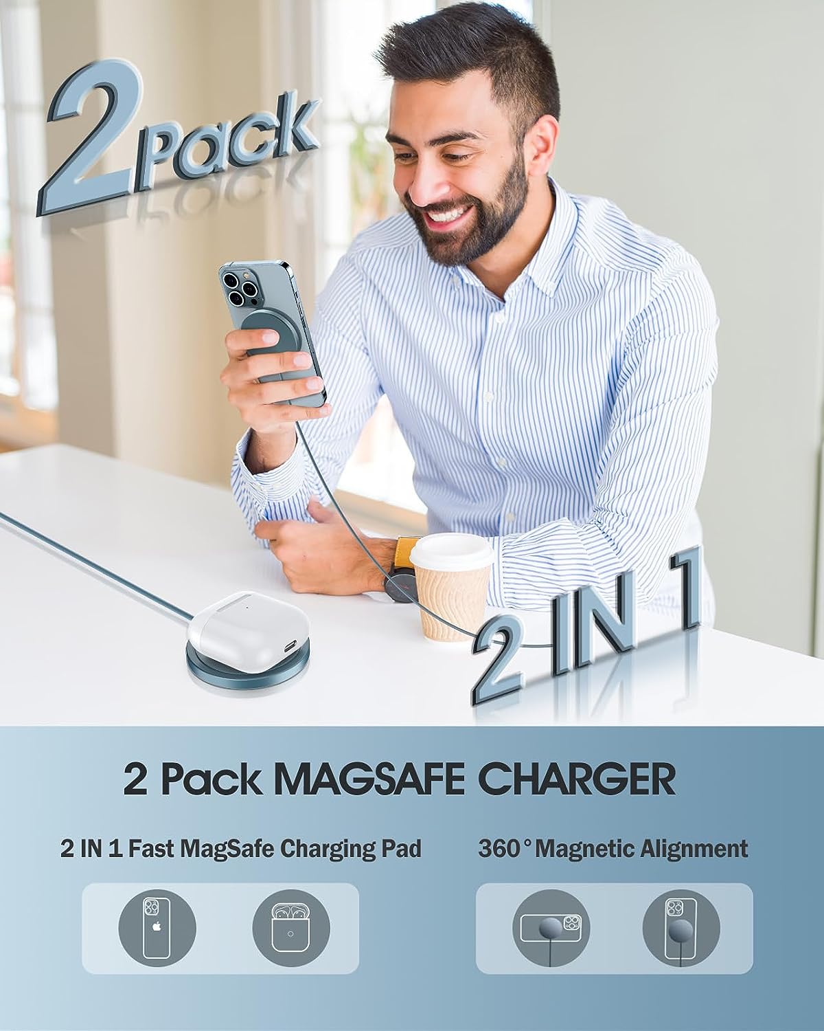 2 Pack High-Speed Magnetic Wireless Charging Pads 15W Each